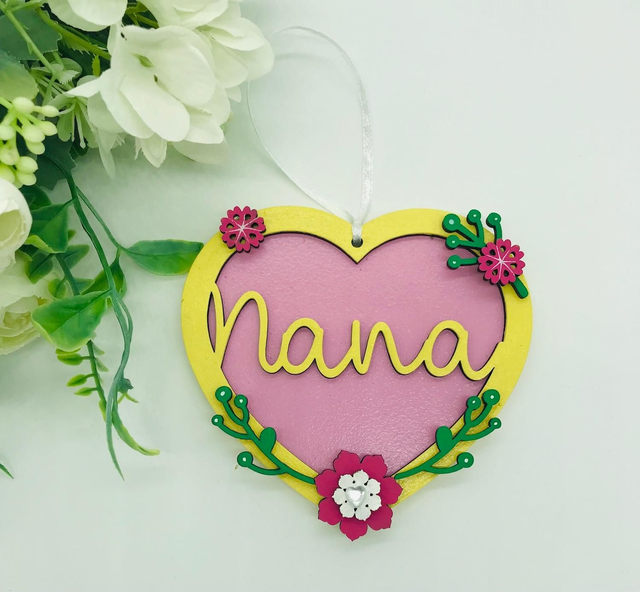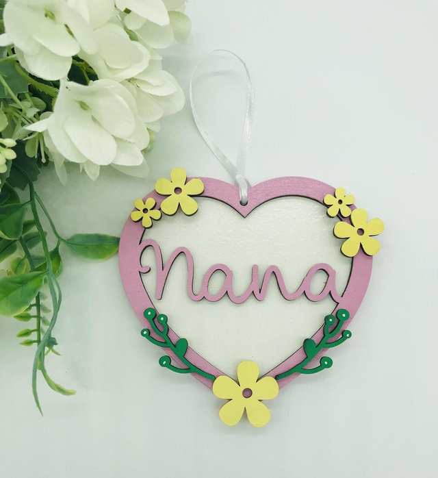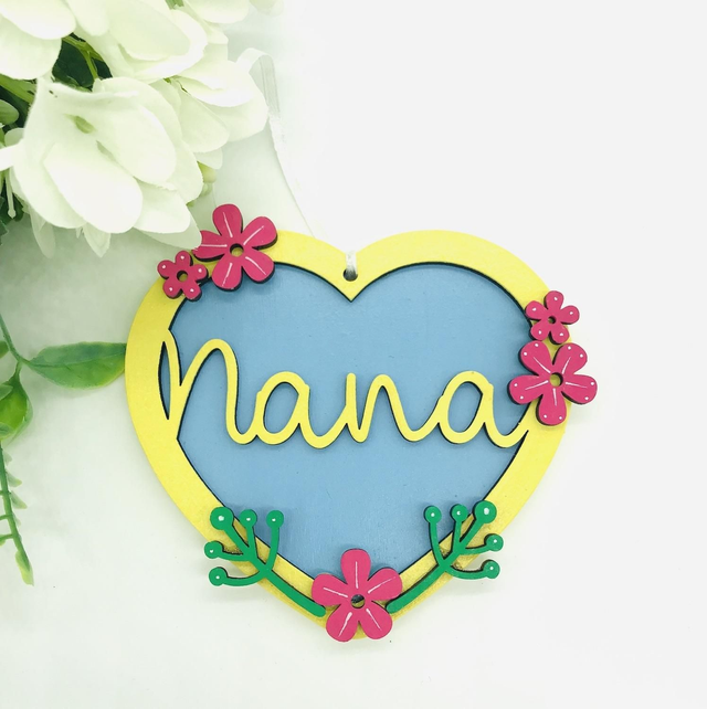 Hand Painted floral hanging hearts with the name Nana